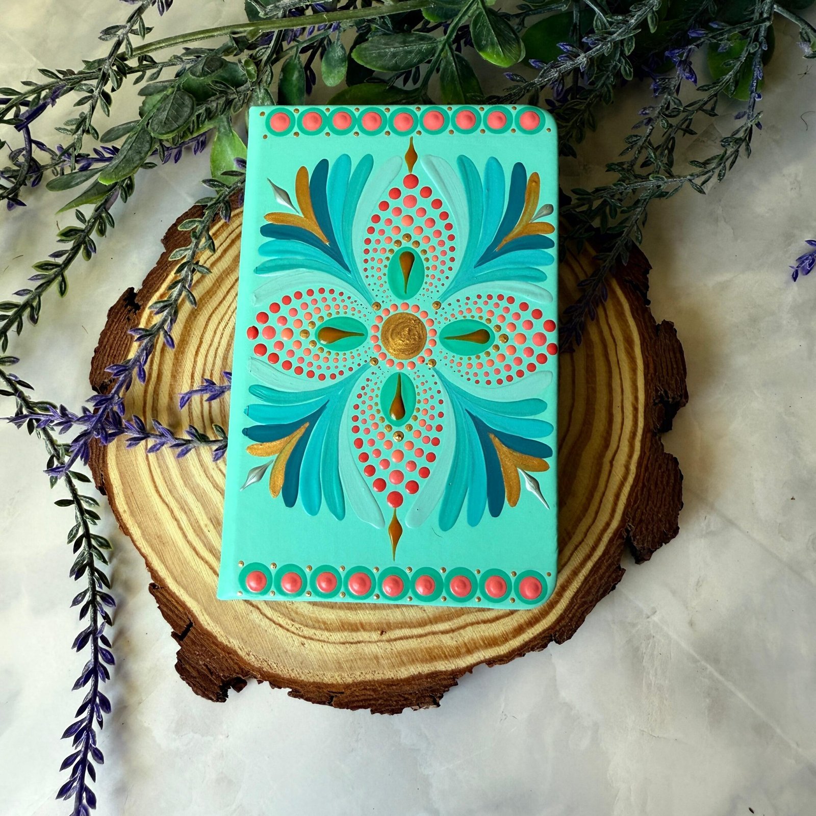Cada bloc de notas Mandala es una pequeña obra de arte única, pintada a mano con dedicación, calma y amor.
