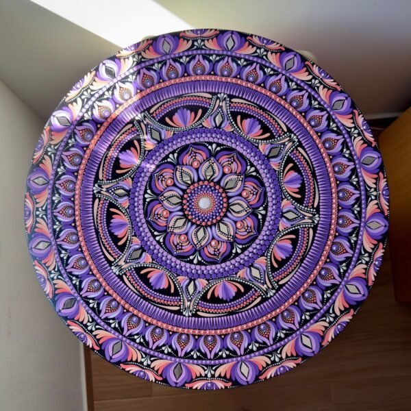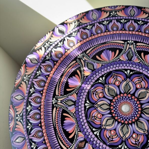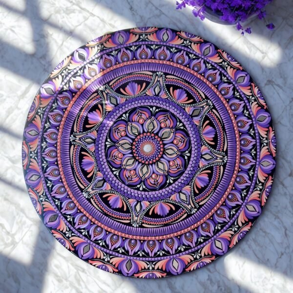 Los tonos cálidos y vibrantes del mandala recuerdan los colores de los corales bajo el agua, mientras que los patrones detallados reflejan la complejidad y fragilidad