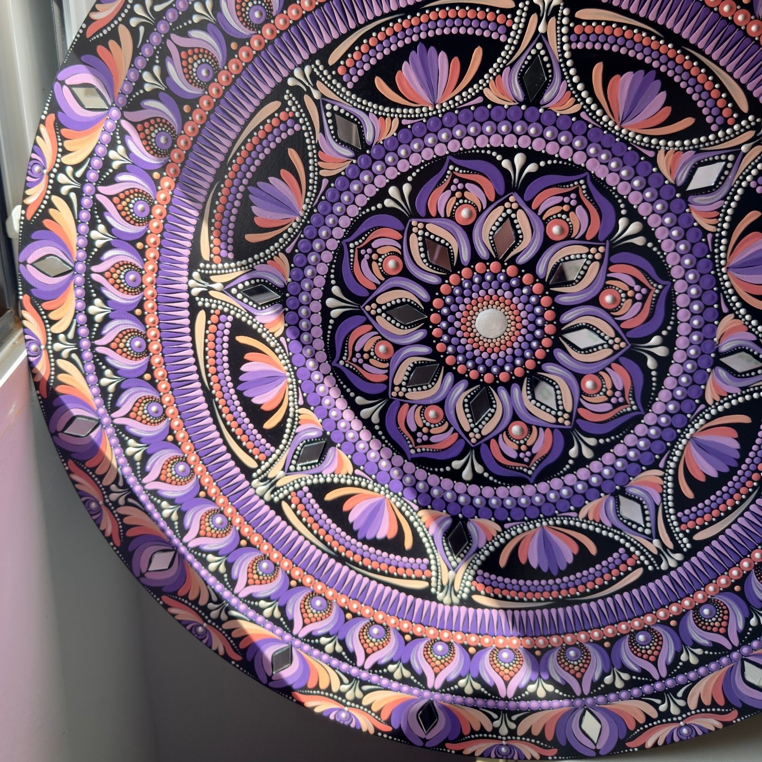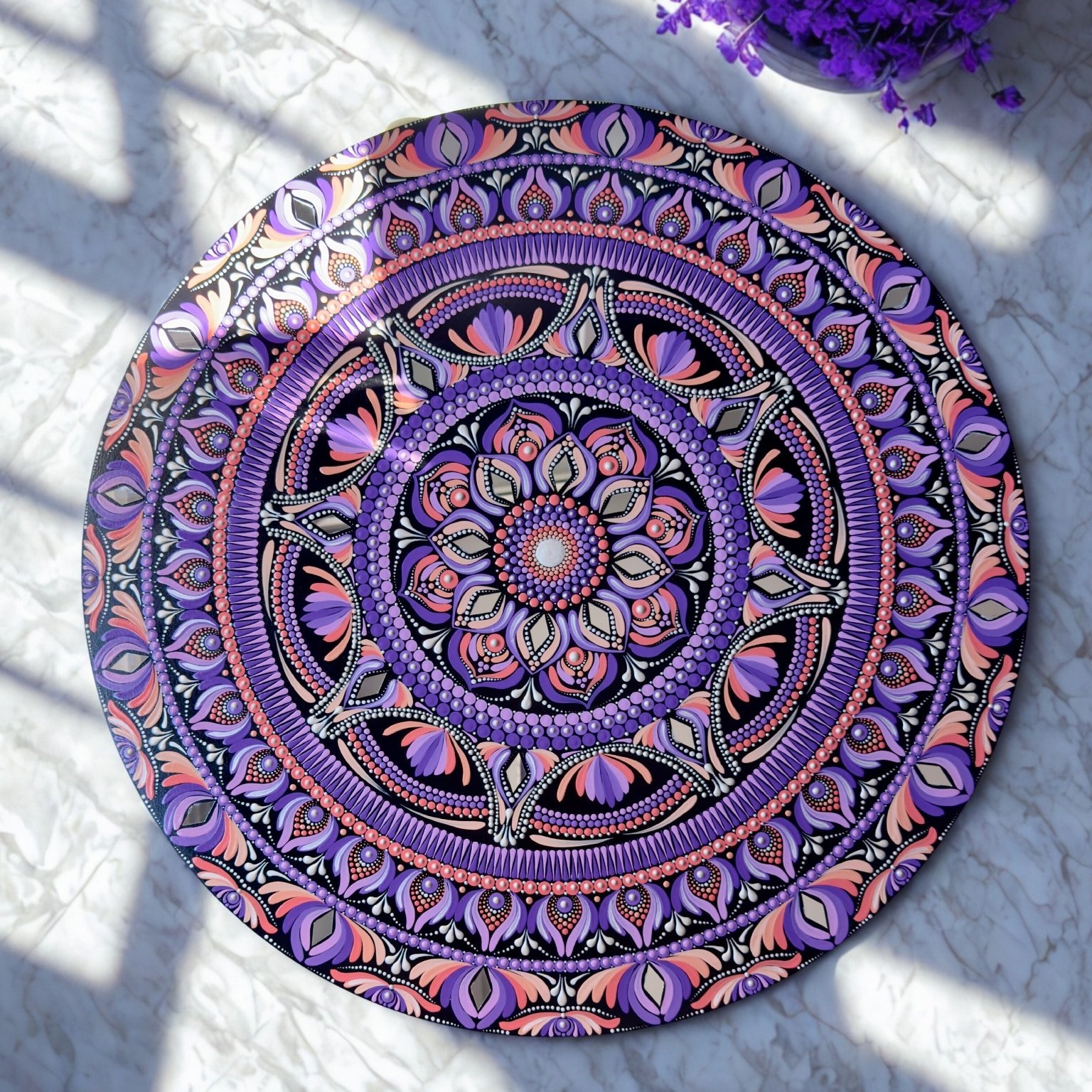 Los tonos cálidos y vibrantes del mandala recuerdan los colores de los corales bajo el agua, mientras que los patrones detallados reflejan la complejidad y fragilidad