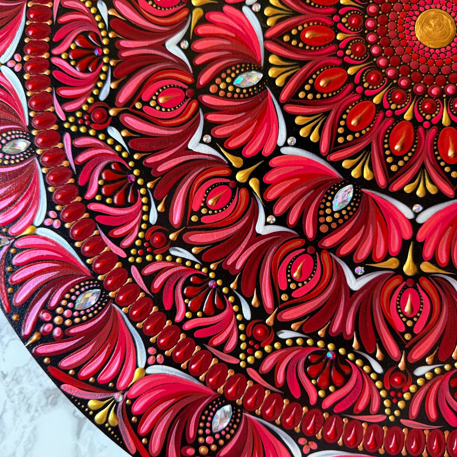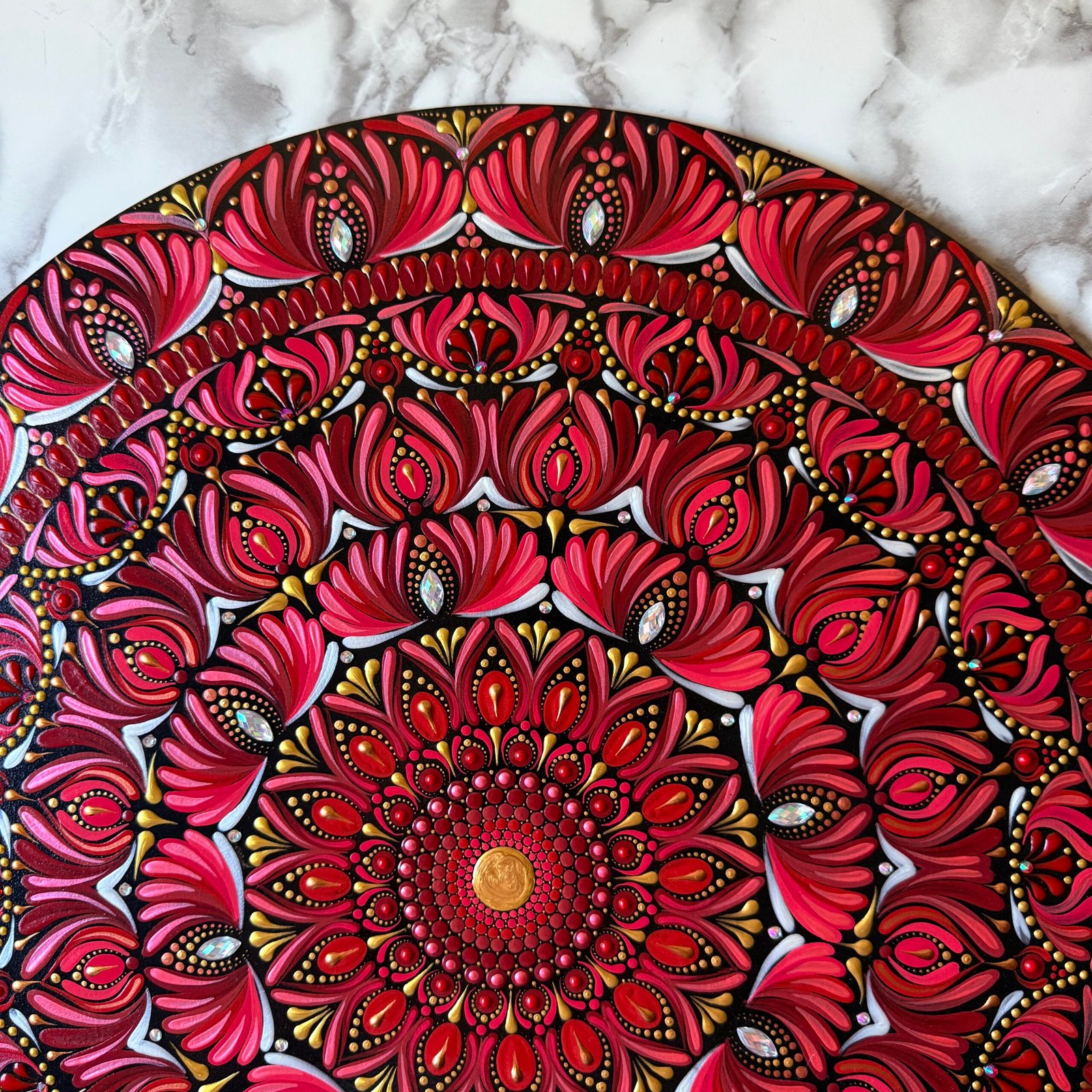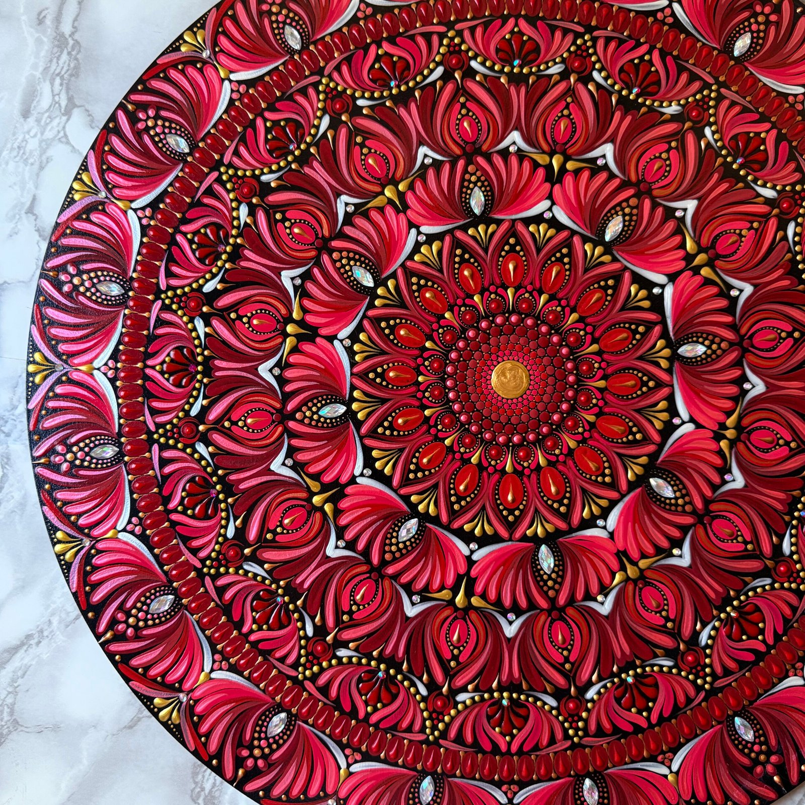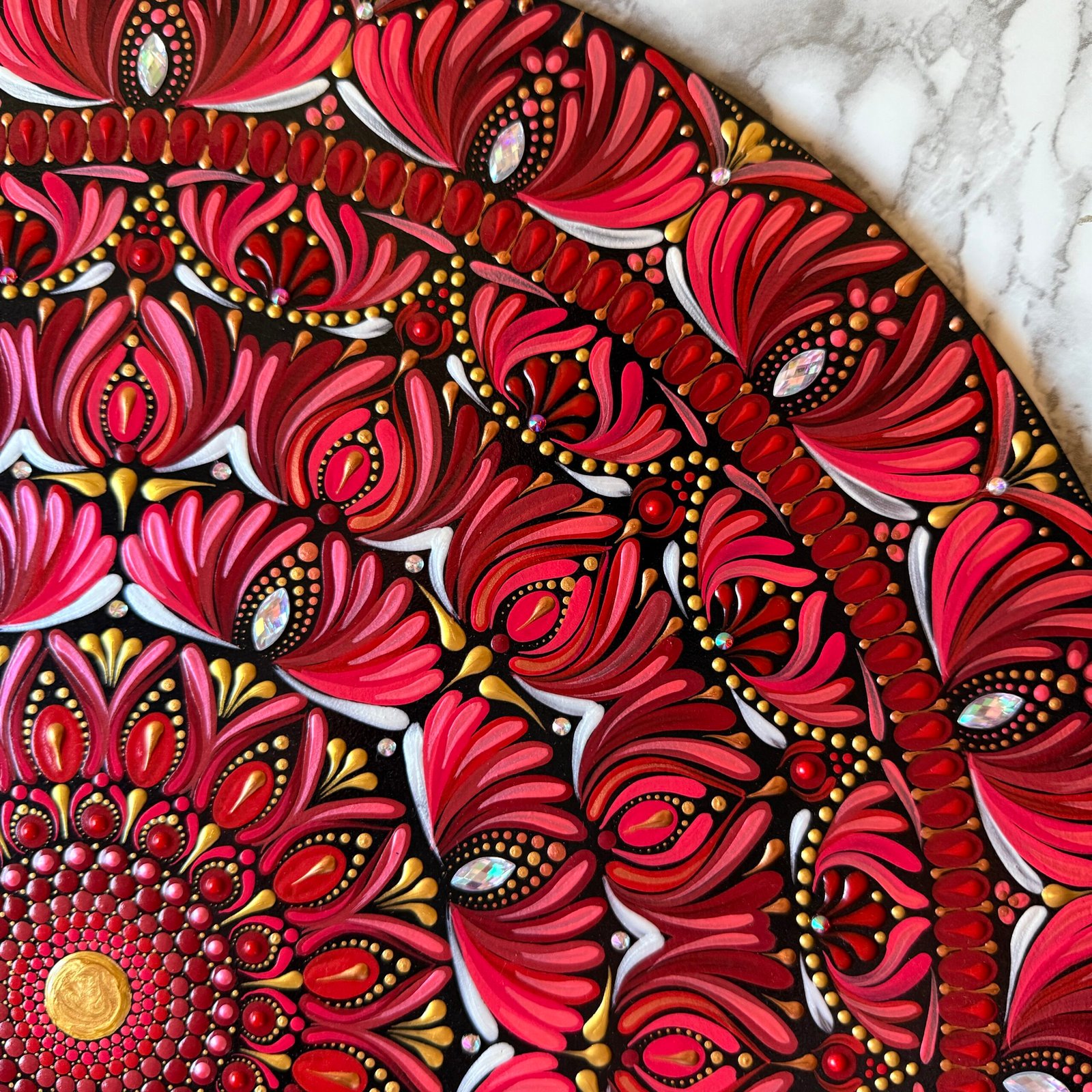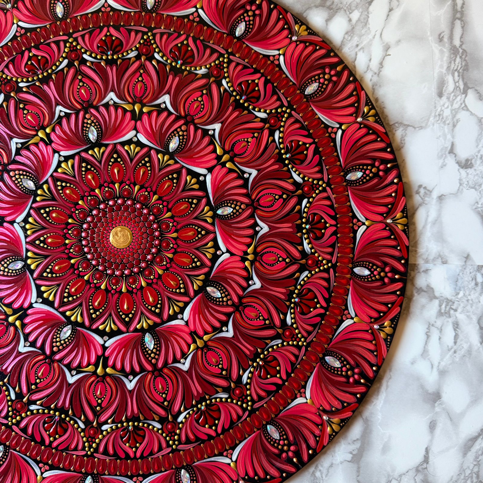 El rojo, color del corazón y de la vida, impulsa la pasión y el amor propio. El blanco transmite calma, claridad y pureza, ofreciendo un espacio de serenidad en medio de la intensidad. El dorado, brillante y protector, simboliza prosperidad, sabiduría y conexión con lo divino.