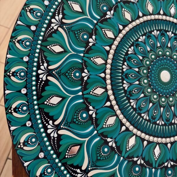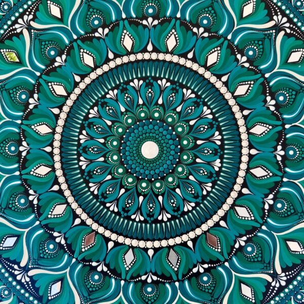 Este mandala representa la conexión entre la serenidad de la naturaleza y la elegancia del brillo.
