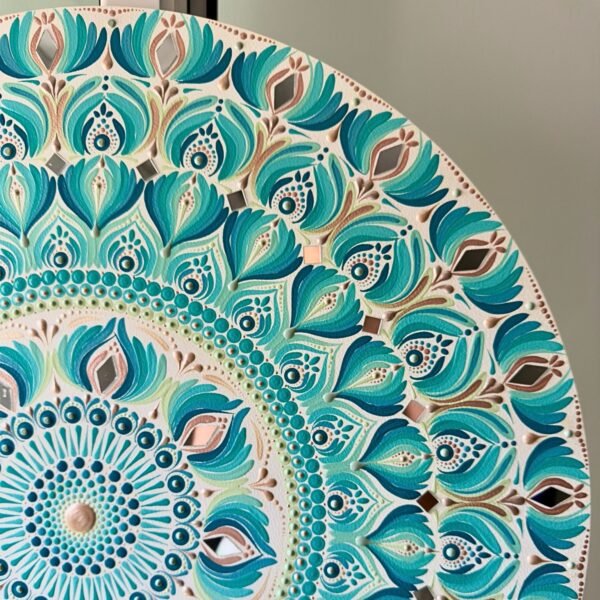 • Elementos decorativos: Incorpora piezas de espejos distribuidos por toda la obra para aportar brillo, luz y profundidad.