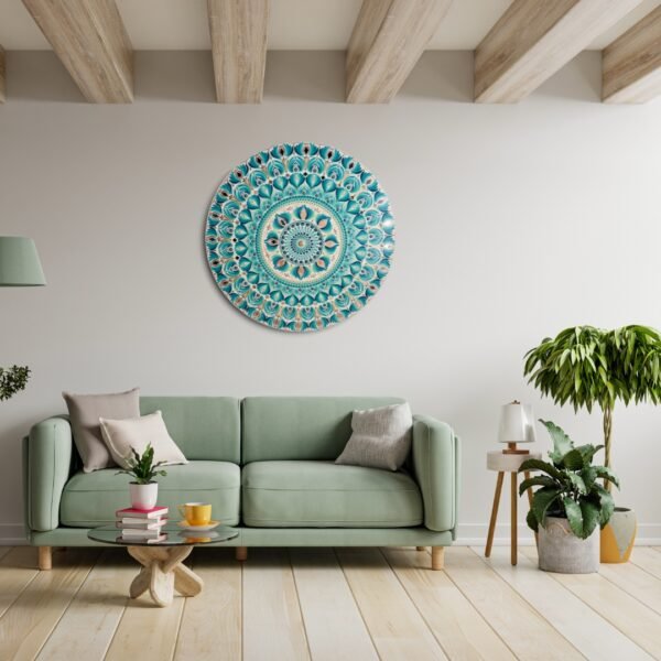 Este es un mandala que refleja calma y renovación a través de sus diferentes tonos de azul, símbolo de serenidad y equilibrio emocional.