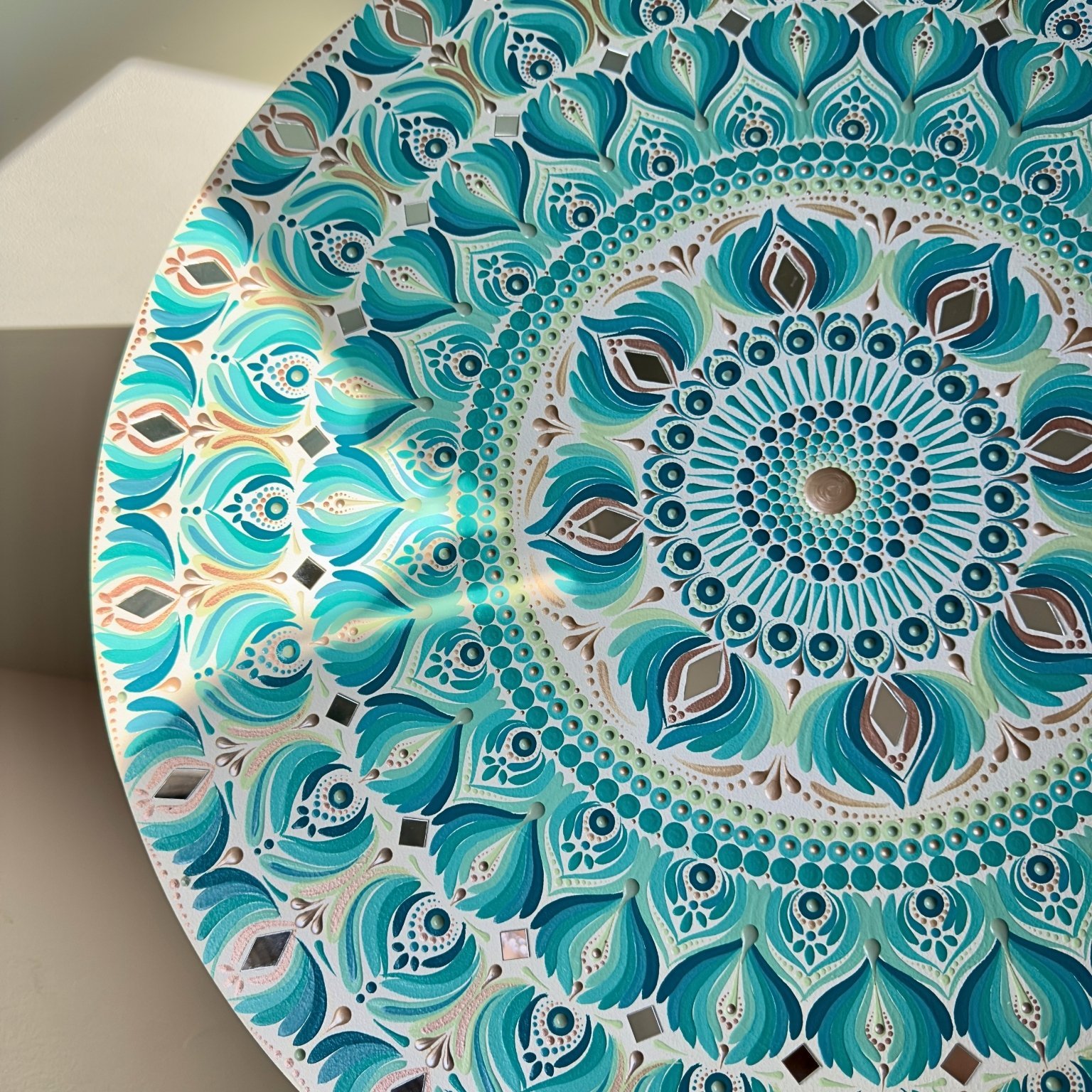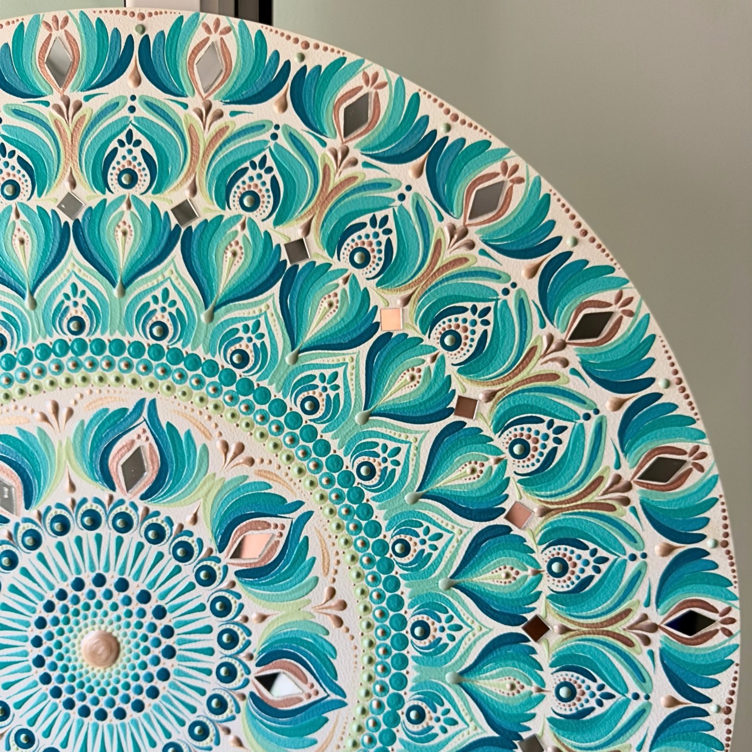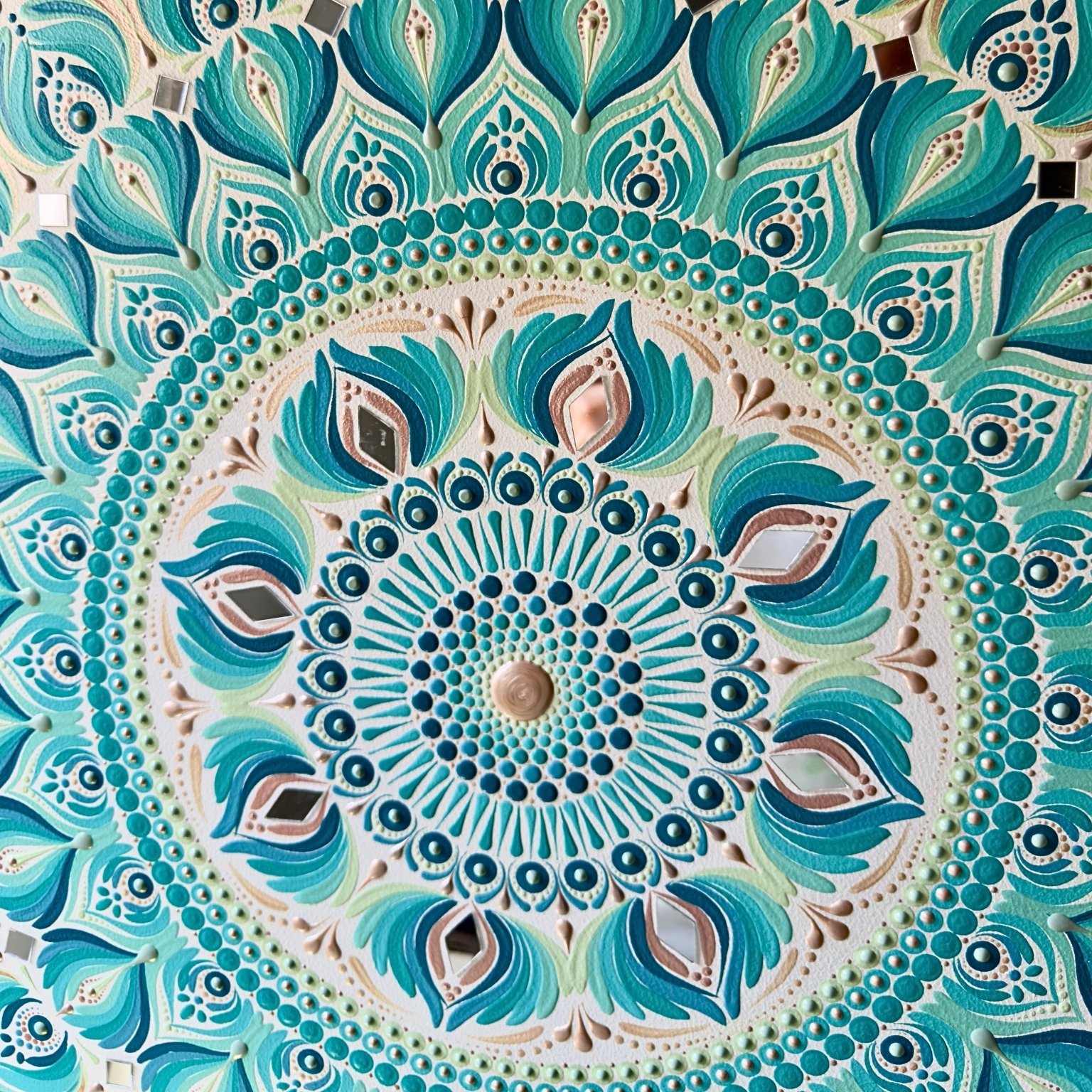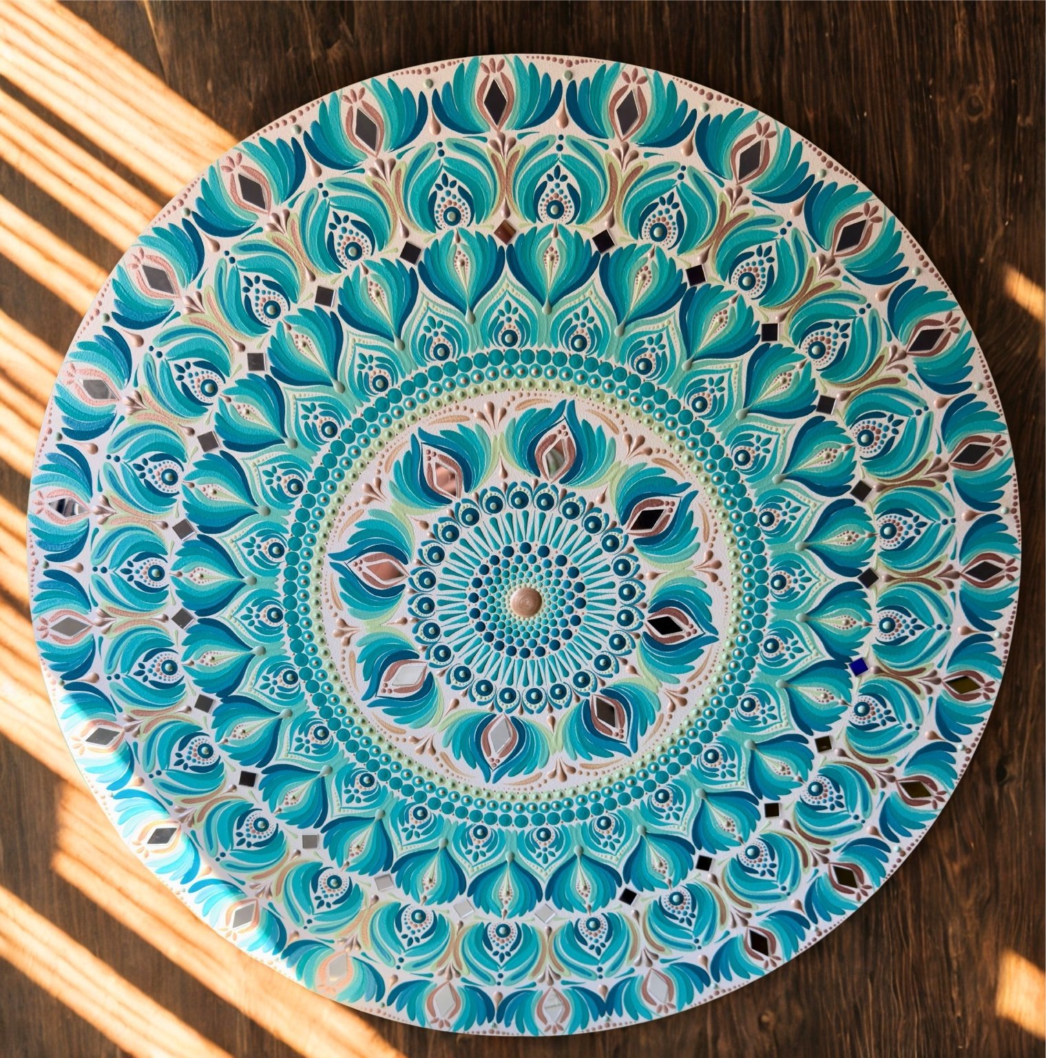 Este es un mandala que refleja calma y renovación a través de sus diferentes tonos de azul, símbolo de serenidad y equilibrio emocional.