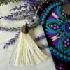 - Elementos decorativos: En el extremo incorpora un pompón de flecos con un adorno metálico de acero, que aporta un toque elegante y distintivo.