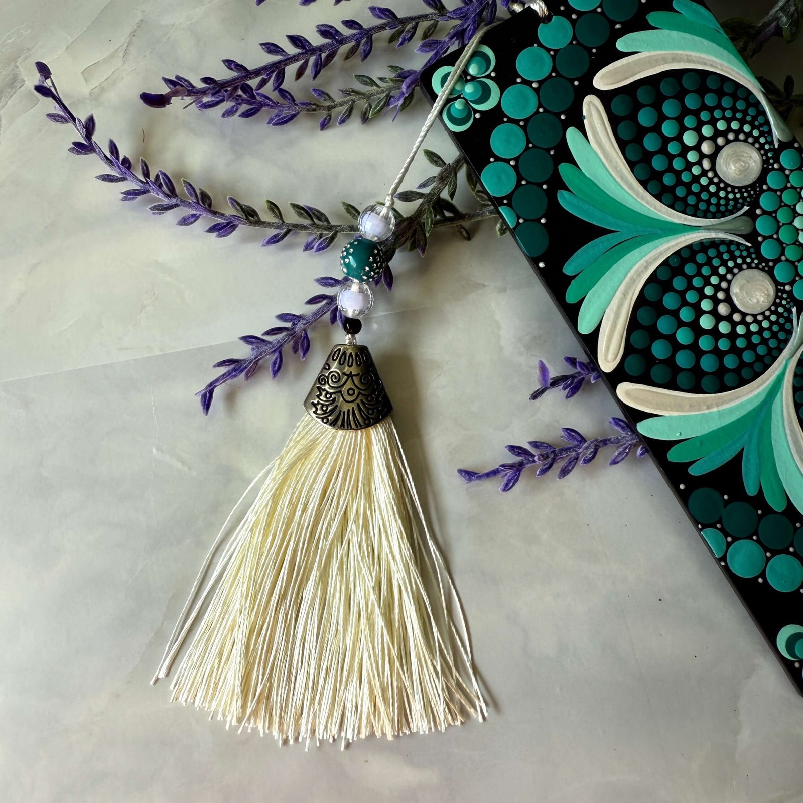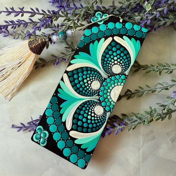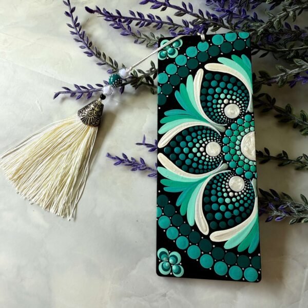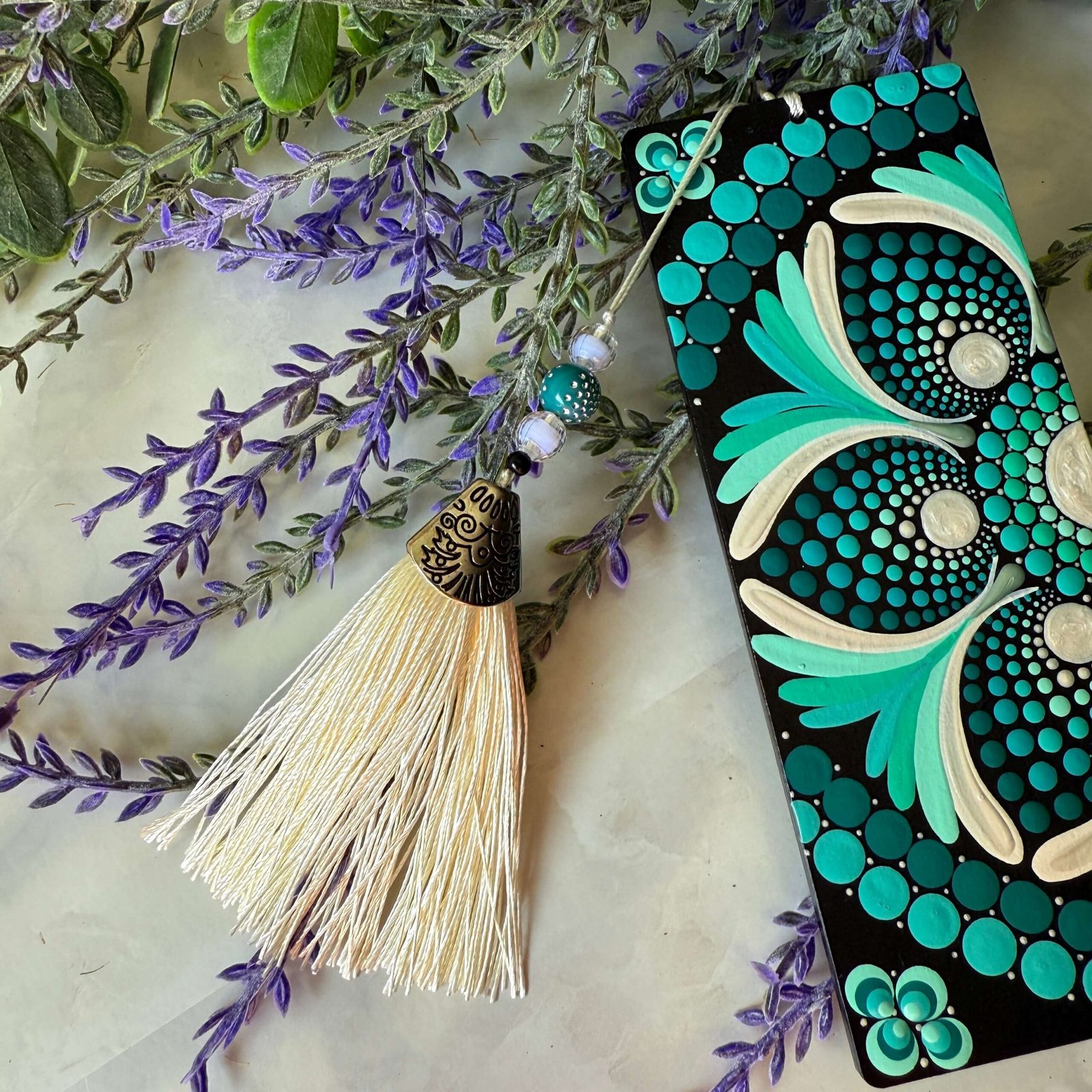 Cada marcapáginas ha sido cuidadosamente pintado a mano, convirtiéndolo en una pieza única que combina arte y funcionalidad. La borla de flecos con bolitas de colores añade un toque decorativo y alegre, haciendo que cada lectura se convierta en una experiencia más especial. Un accesorio práctico y encantador que aporta color y personalidad a tus libros.